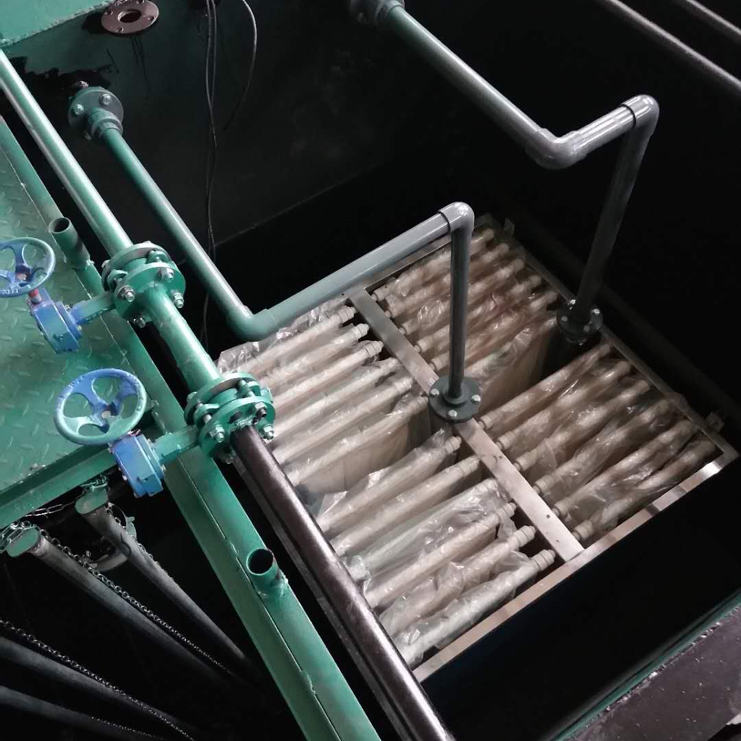 3、缺氧池(A級(jí)):缺氧池為脫氮處理而設(shè)置,經(jīng)過(guò)格柵分離后的污水經(jīng)調(diào)節(jié)池中的污水提升泵泵入缺氧池與池中的回流硝化液相混合,缺氧池中放置繩型生物填料作為反硝化細(xì)菌的載體,對(duì)氮;磷;硫化物去除效果好,停留時(shí)間為1.5小時(shí)與前續(xù)工藝中的污泥池相結(jié)合形成AO法處理工藝,從而達(dá)到脫磷、脫氮的目的。