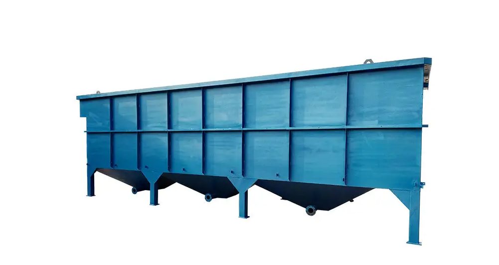 (2)斜管的上層應(yīng)有0.5-1.0m的水深,底部緩沖層高度為1.0m。斜管(板)下為廢水分布區(qū),一般高度不小于0.5m,布水區(qū)下部為污泥區(qū);